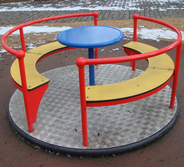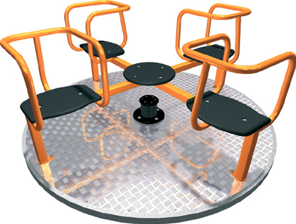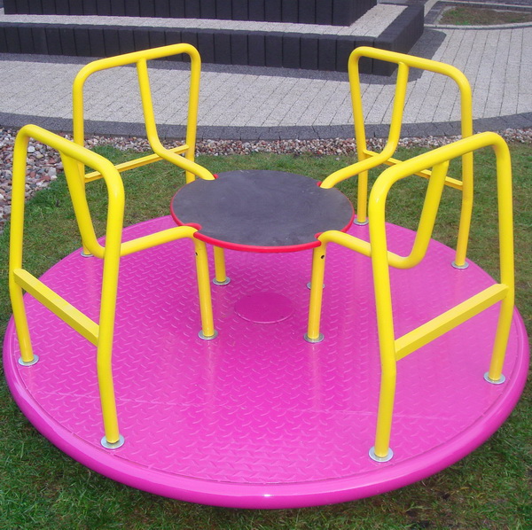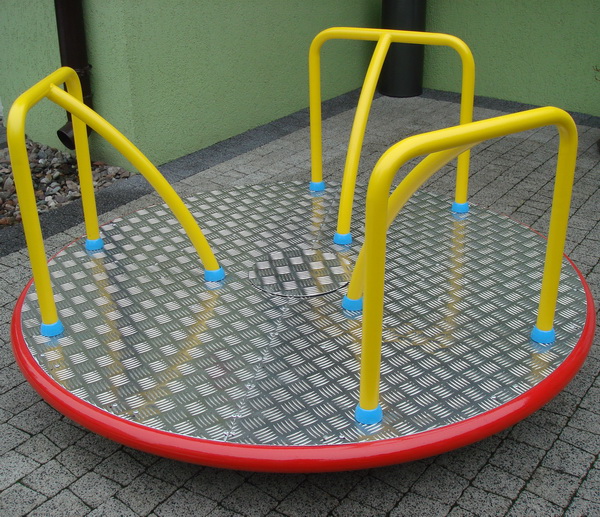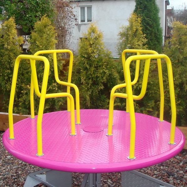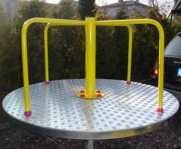Metalový kolotoč na kovovom podstavci. Pre svoju ľahkú montáž je obľúbený v materských školách. Nie je nutné ho betónovať, stačí zakopať do zeme. Základňa je z hliníkovej plechy, použité farby sú ekologicky nezávadné. Konzola sa zakopáva cca 60 cm a pri použití 10 cm vrstvy betónu sa stabilita kolotoča ešte zvýši.