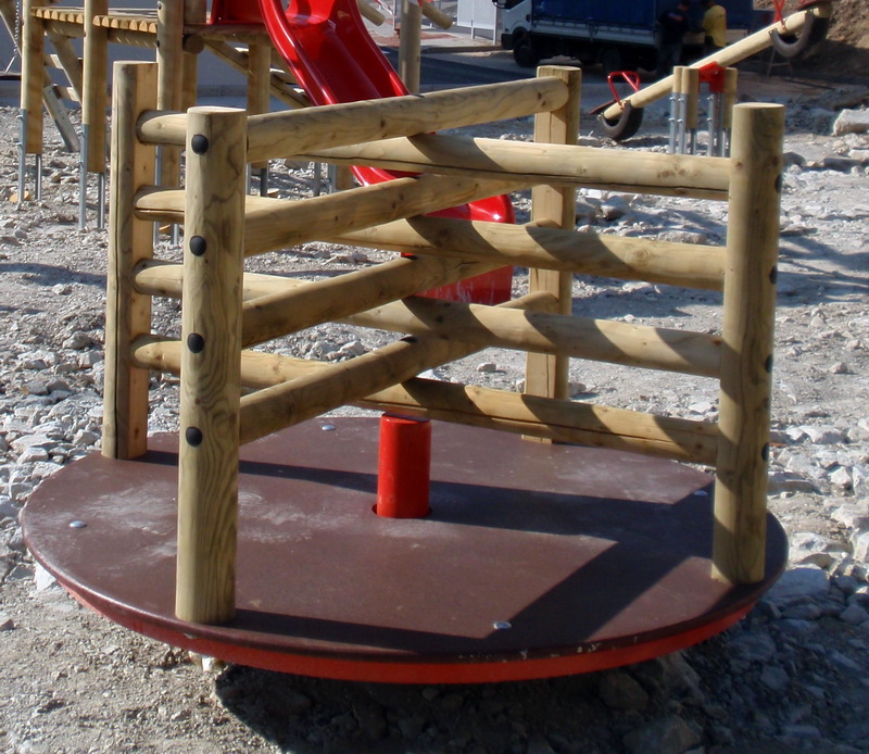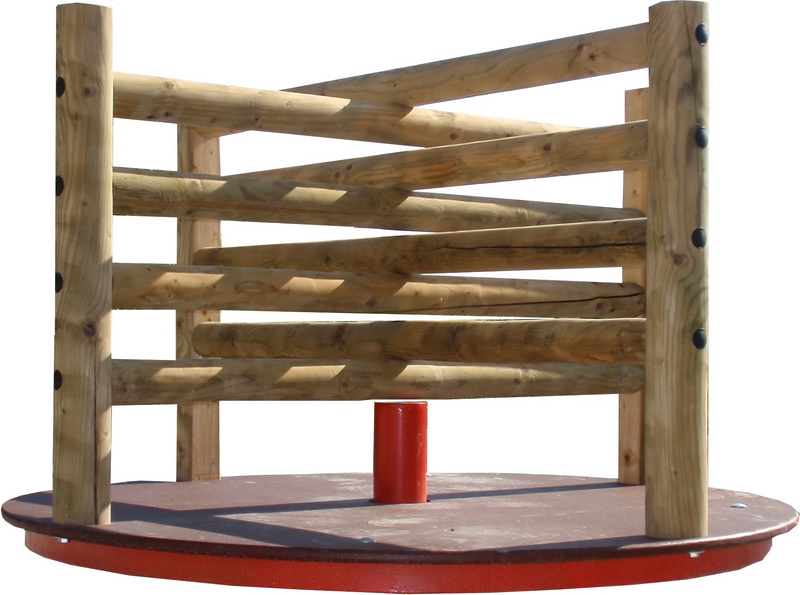 Drevený kolotoč je vyrobený z impregnovaného borovicového dreva. Montáž nosnej konzoly je formou zapustenia do zeme približne 70 cm a následného zaliatia betónom. Tento spôsob poskytuje bezpečnosť a stabilitu.